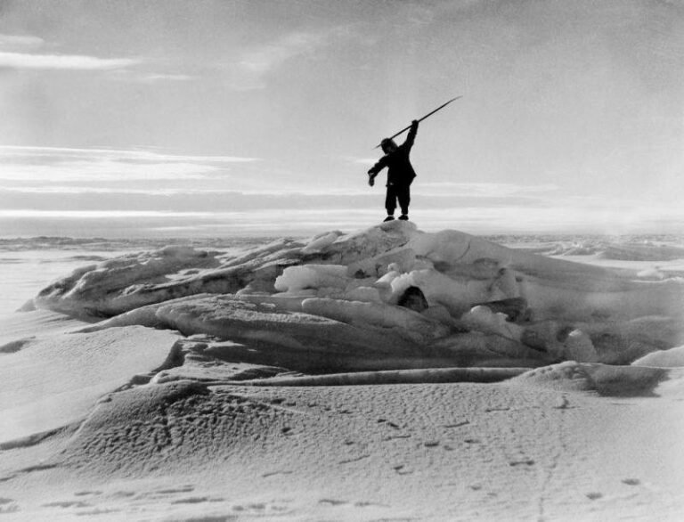“Khắp nơi tuyết phủ trắng xoá, những túp lều của người Eskimo ở rất xa nhau. Lều làm bằng lông thú, đôi khi lẫn luôn vào màu tuyết trắng xung quanh, nhất là khi gió bão vần vũ, cuốn tuyết bay mịt mù. Người Eskimo nhìn bề ngoài cũng to sụ, tròn quay trong bộ trang phục lông thú dày cộp, chủ yếu là màu xám hay trắng, cũng hay lẫn vào trong tuyết. Chỉ còn có gương mặt của