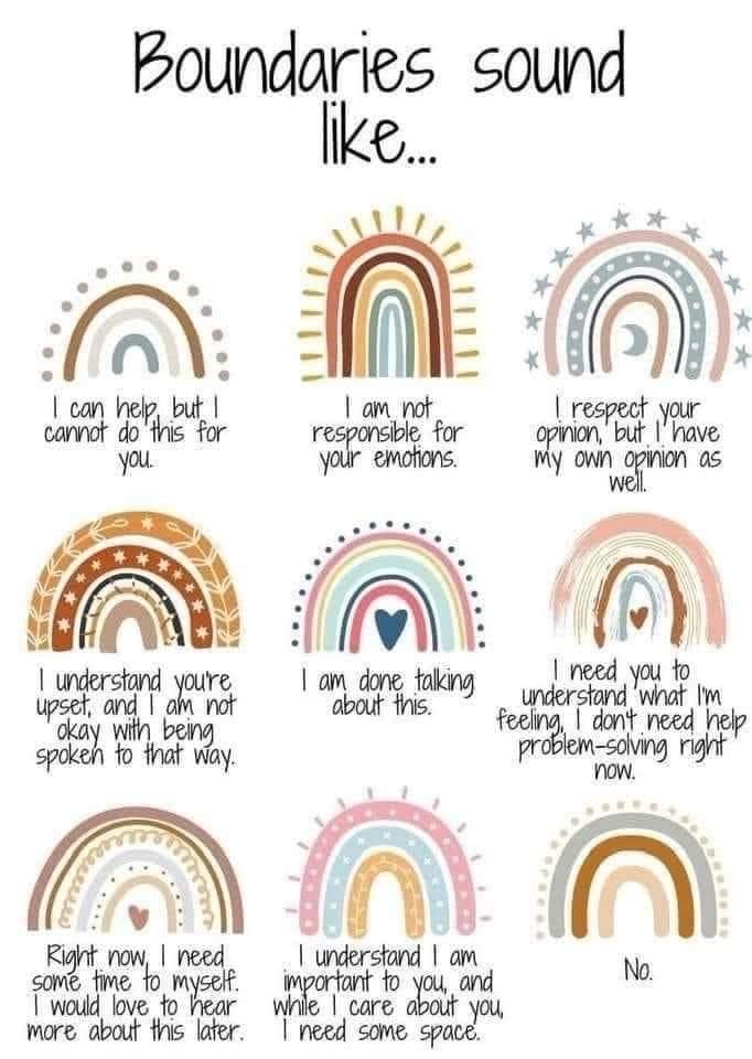 Một số câu nói giúp mình tạo lập ranh giới/hàng rào bảo vệ bản thân mình (mà phần lớn là trong gia đình, là người thân với nhau). Với người ngoài, bạn có thể dùng các câu nói còn mạnh hơn nữa. Chủ ngữ thay đổi theo cách xưng hô của bạn nhé!