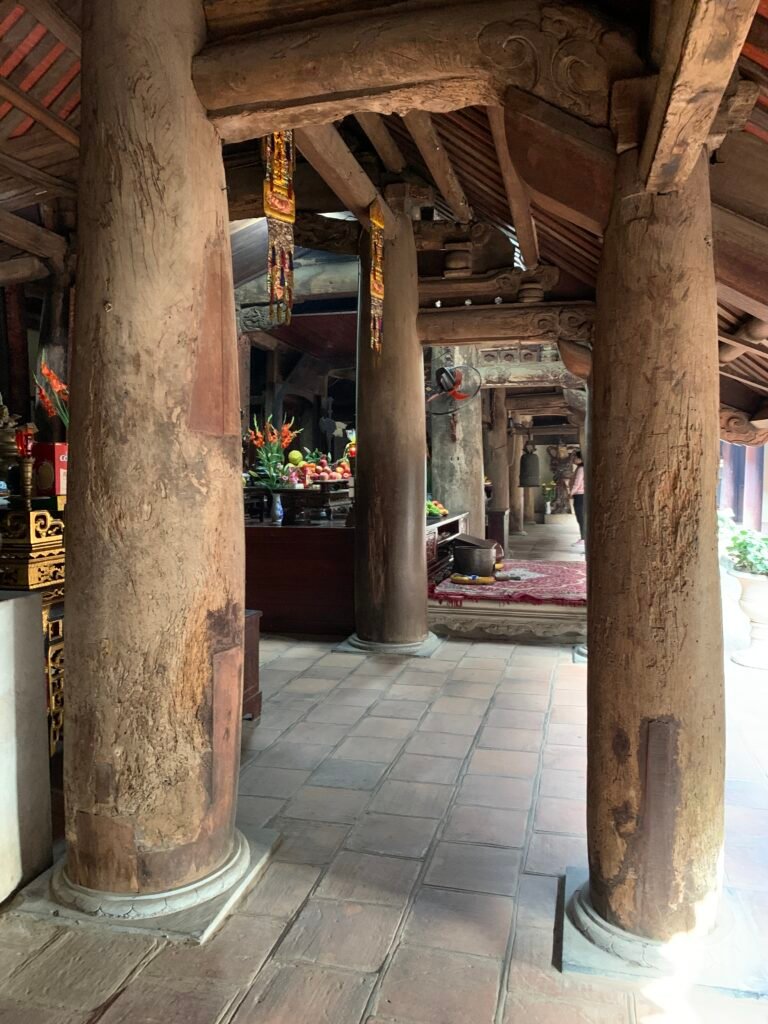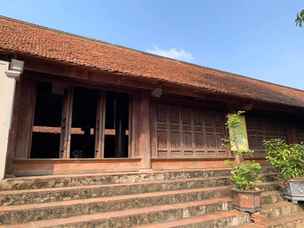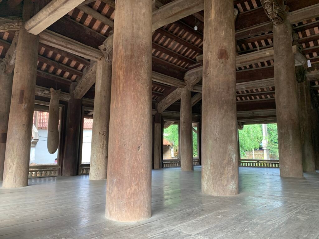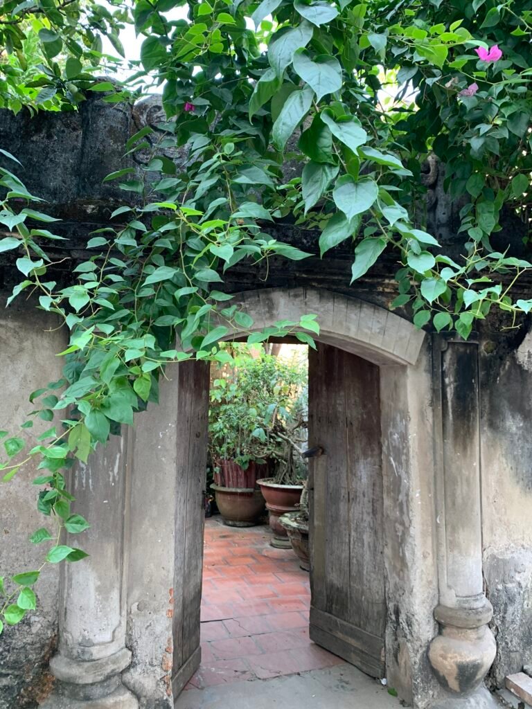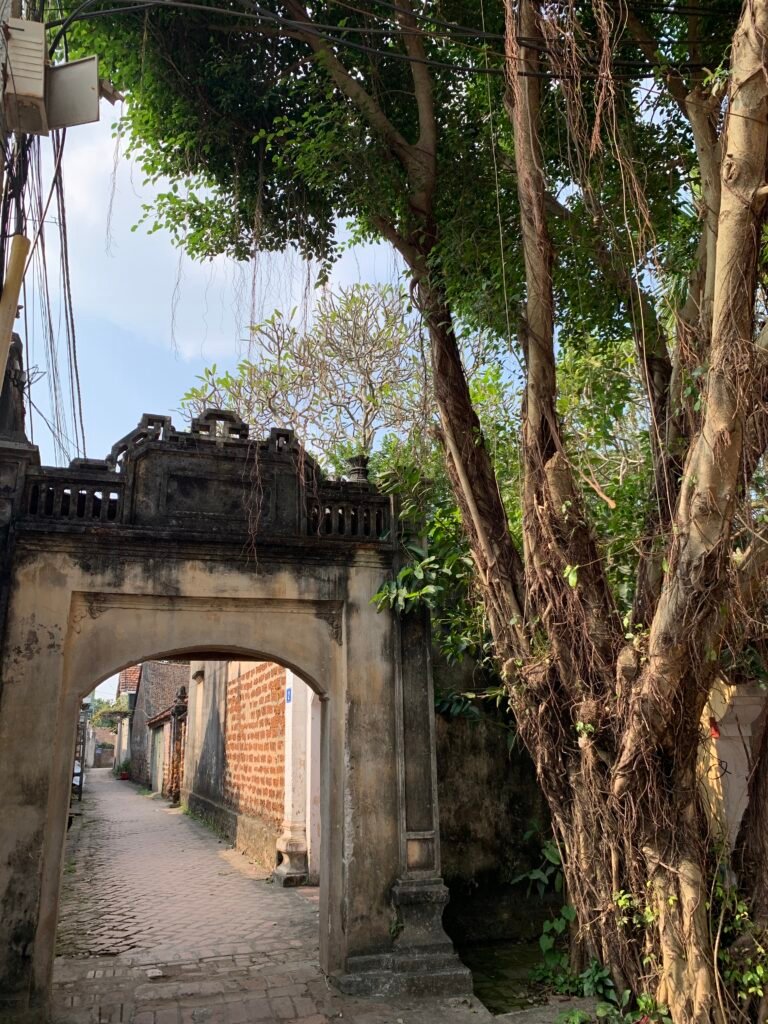 Cổng làng hơn 300 năm tuổi, ngày xưa là tối đâu 9 – 10g là đóng cổng (xung quanh là giao thông hào) “nội bất xuất, ngoại bất nhập”. Đình làng xây cùng lúc với cổng làng.2 gian 2 bên đình rộng rãi, có chú cá gỗ treo lửng lơ.Có một chàng trai đứng lơ thơ…Cổng đình, bên này là gạch xây từ thời xưa. Bên ni gọi là Mông Phụ nha (bên kia, đương nhiên, gọi là Mông Chính). Bên cạnh tường Mông Phụ có cái giếng làng đẹp lắm, mà giờ bị bên quay phim nào đó đem tráng xi măng lên thành mất đi vẻ rêu phong.Nghe nói ngày xưa ai muốn lấy vợ làng này là phải góp gạch để làm đường làng nhá!Chùa Mía, gian ngoài xây mới.Thích những cây cột trên nhỏ dưới thuôn to dần như thế này!Ngay bên phải cổng vào là cây nhãn 800 năm tuổi. Phía bên kia (bên trái bên hông đền) có vườn nhãn tiến vua do các họ mang cây nhãn tới trồng, mỗi cây mỗi vẻ.Đền thờ Ngô Quyền, tất cả đền chùa ở đây hầu như cần đi sâu vào trong cùng, gian nhỏ thấp nhất là gian cổ, với những bức tượng cổ, mới có thần nhất!Bản ghi danh hàng duối (ở đây ghi là rạng ruối) 18 cây, hiện có 2 cây bị chết, đang ủ thuốc cho mọc rễ sống lại. Những cây duối từng là nơi cột voi cột ngựa của Phùng Hưng.Hàng duốiMón thấy ngon nhất, đã nhất nguyên chuyến đi là món này. Bưởi đào đường vừa tươi vừa ngọt vừa hồng. Mía vừa ngọt vừa mềm. Ăn ở quán nước trước đền thờ Ngô Quyền. Trong không gian nhìn ra cánh đồng, ăn mía, uống nước mía vừa nghe kể sự tích kẻ mía, gà mía đến từ Bà Chúa Mía (vợ Trạng Trình).Trong làng có 3 nhà cổ, đây là nhà to nhất, được gọi dân dã là nhà ông Thiệu thì phải. Nhà có 7 gian 1 vì (mình vẫn chưa hiểu vì là gì lắm), may quá hôm nay đã hiểu “gian” là thế nào! Nhà từ xưa đến nay chỉ sửa sang không xây thêm xây mới. Ngày xưa các cụ xây nhà bền thế, mát thế!Một chiếc móc áo xinh xắn!Sập gụ càng xinh!Ô cửa nhìn ra sân đầy nắng đang phơi những vại tương to, mùi chua thơm nồng khắp! Tấm cuối là 3 con người hiện đại đang lạc đến đây!