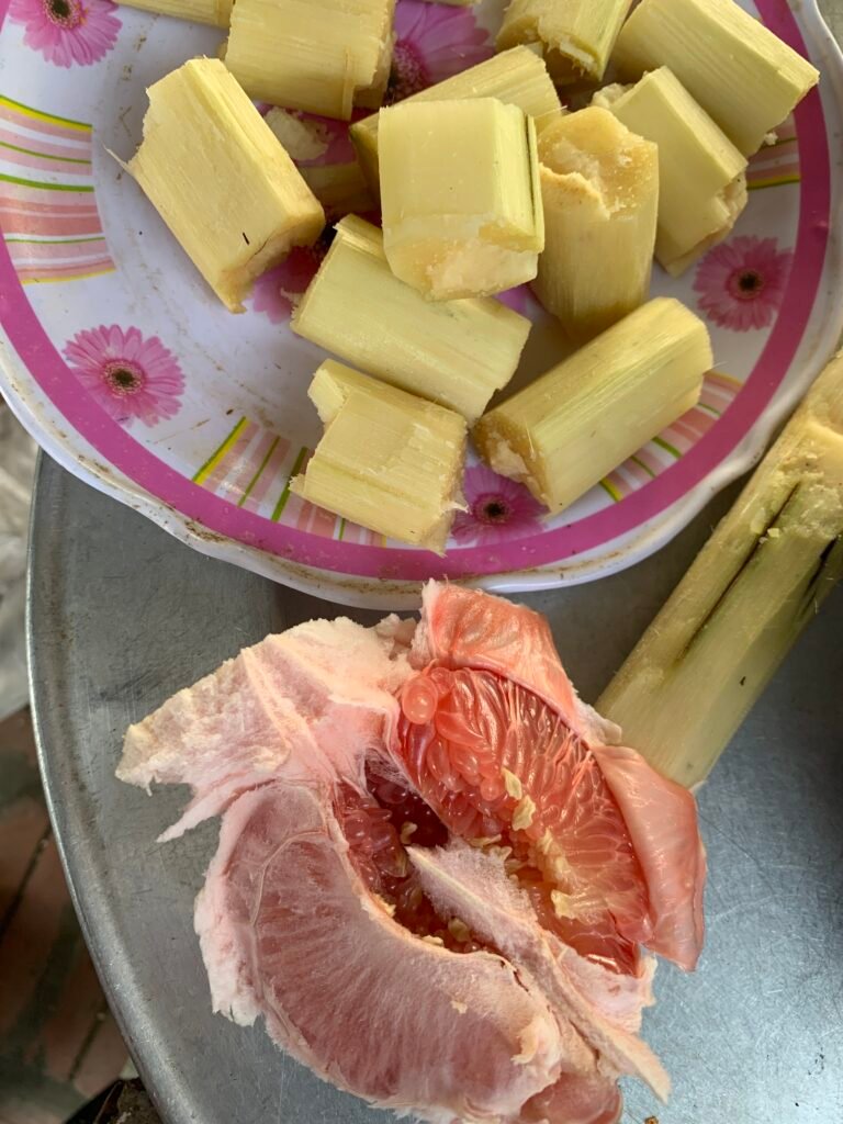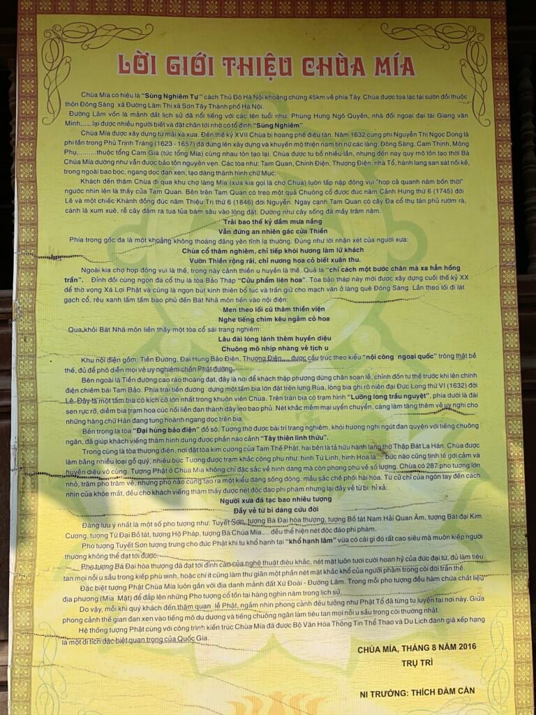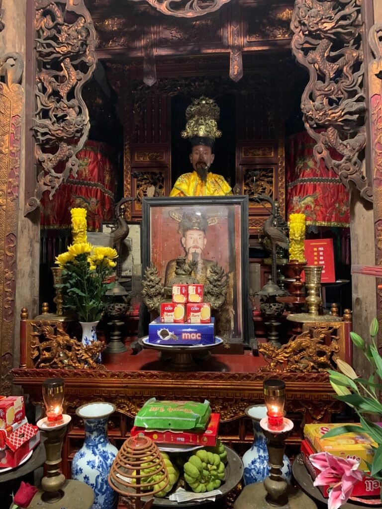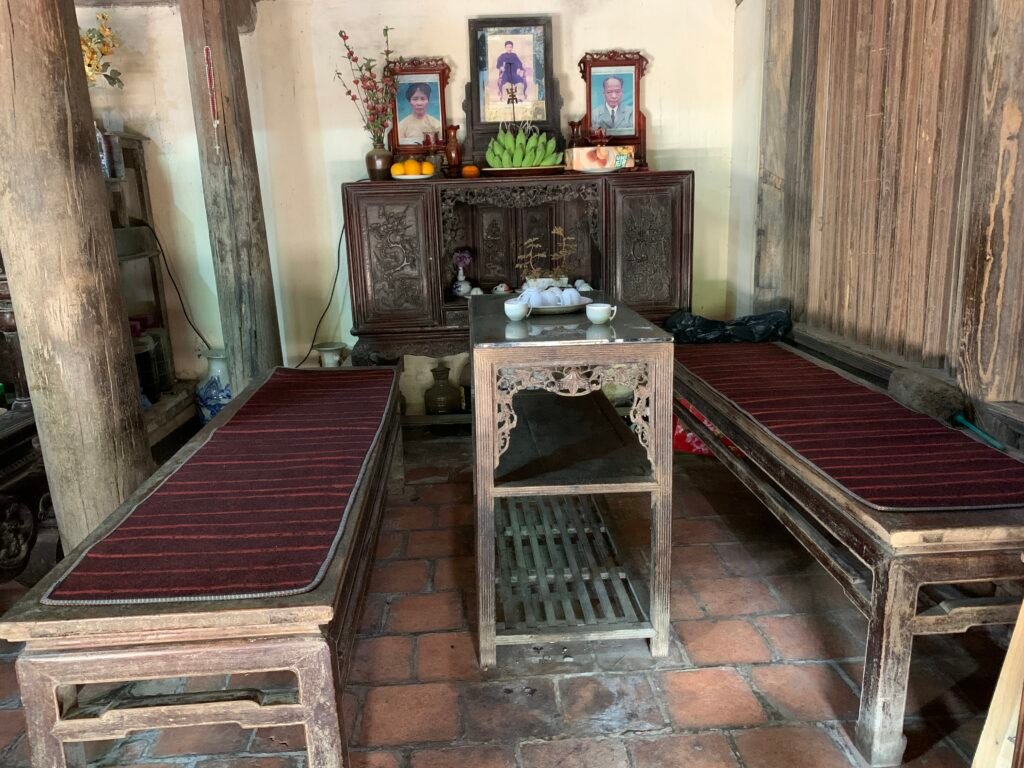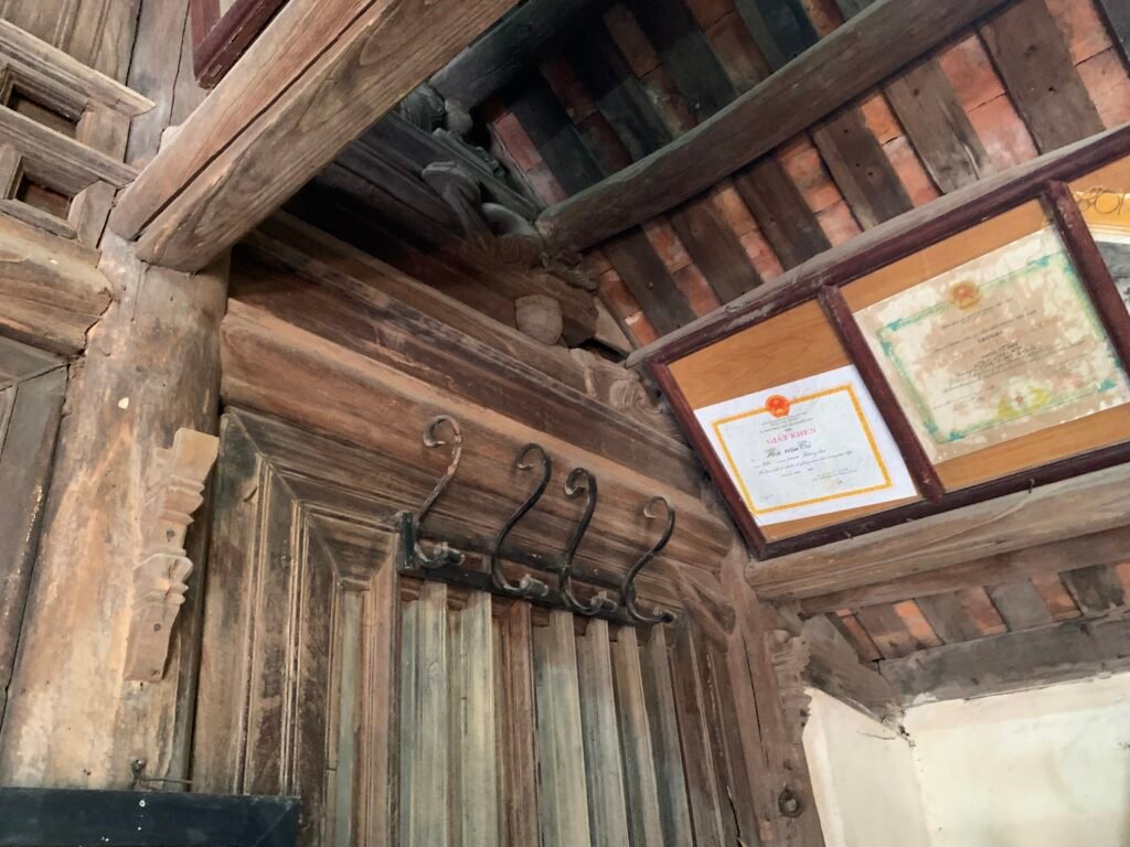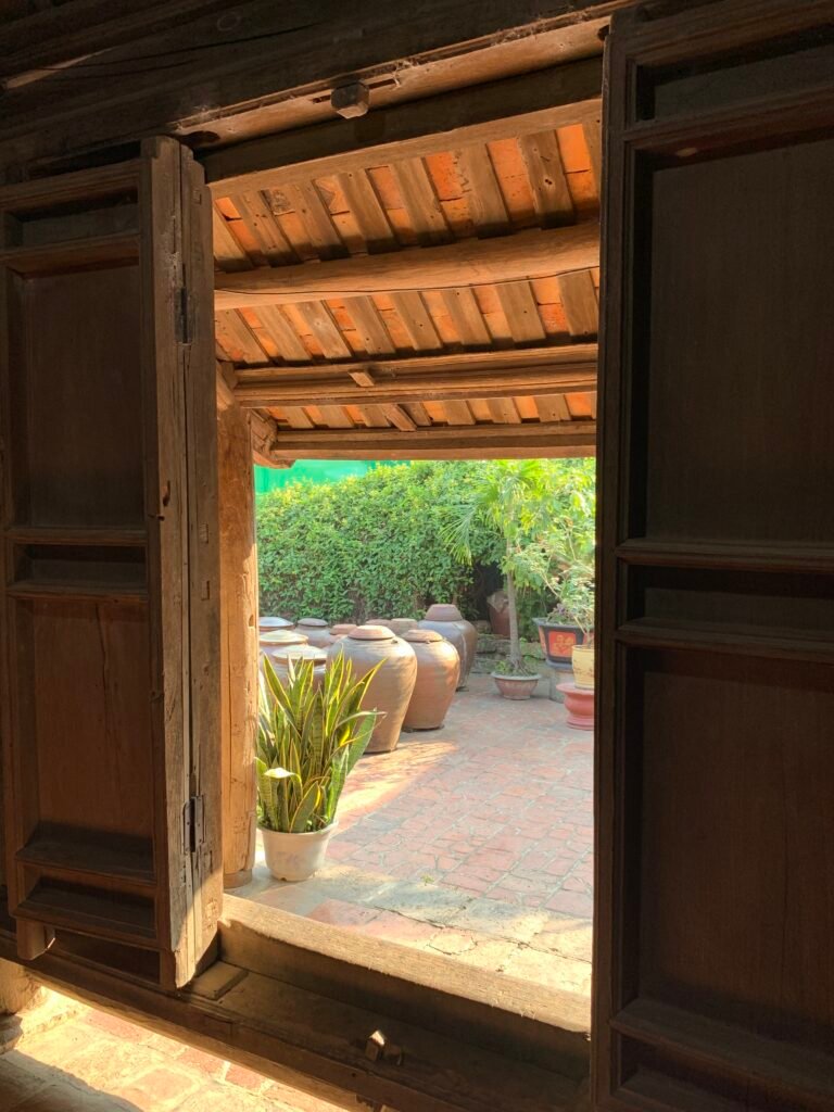 Cổng làng hơn 300 năm tuổi, ngày xưa là tối đâu 9 – 10g là đóng cổng (xung quanh là giao thông hào) “nội bất xuất, ngoại bất nhập”. Đình làng xây cùng lúc với cổng làng.2 gian 2 bên đình rộng rãi, có chú cá gỗ treo lửng lơ.Có một chàng trai đứng lơ thơ…Cổng đình, bên này là gạch xây từ thời xưa. Bên ni gọi là Mông Phụ nha (bên kia, đương nhiên, gọi là Mông Chính). Bên cạnh tường Mông Phụ có cái giếng làng đẹp lắm, mà giờ bị bên quay phim nào đó đem tráng xi măng lên thành mất đi vẻ rêu phong.Nghe nói ngày xưa ai muốn lấy vợ làng này là phải góp gạch để làm đường làng nhá!Chùa Mía, gian ngoài xây mới.Thích những cây cột trên nhỏ dưới thuôn to dần như thế này!Ngay bên phải cổng vào là cây nhãn 800 năm tuổi. Phía bên kia (bên trái bên hông đền) có vườn nhãn tiến vua do các họ mang cây nhãn tới trồng, mỗi cây mỗi vẻ.Đền thờ Ngô Quyền, tất cả đền chùa ở đây hầu như cần đi sâu vào trong cùng, gian nhỏ thấp nhất là gian cổ, với những bức tượng cổ, mới có thần nhất!Bản ghi danh hàng duối (ở đây ghi là rạng ruối) 18 cây, hiện có 2 cây bị chết, đang ủ thuốc cho mọc rễ sống lại. Những cây duối từng là nơi cột voi cột ngựa của Phùng Hưng.Hàng duốiMón thấy ngon nhất, đã nhất nguyên chuyến đi là món này. Bưởi đào đường vừa tươi vừa ngọt vừa hồng. Mía vừa ngọt vừa mềm. Ăn ở quán nước trước đền thờ Ngô Quyền. Trong không gian nhìn ra cánh đồng, ăn mía, uống nước mía vừa nghe kể sự tích kẻ mía, gà mía đến từ Bà Chúa Mía (vợ Trạng Trình).Trong làng có 3 nhà cổ, đây là nhà to nhất, được gọi dân dã là nhà ông Thiệu thì phải. Nhà có 7 gian 1 vì (mình vẫn chưa hiểu vì là gì lắm), may quá hôm nay đã hiểu “gian” là thế nào! Nhà từ xưa đến nay chỉ sửa sang không xây thêm xây mới. Ngày xưa các cụ xây nhà bền thế, mát thế!Một chiếc móc áo xinh xắn!Sập gụ càng xinh!Ô cửa nhìn ra sân đầy nắng đang phơi những vại tương to, mùi chua thơm nồng khắp! Tấm cuối là 3 con người hiện đại đang lạc đến đây!