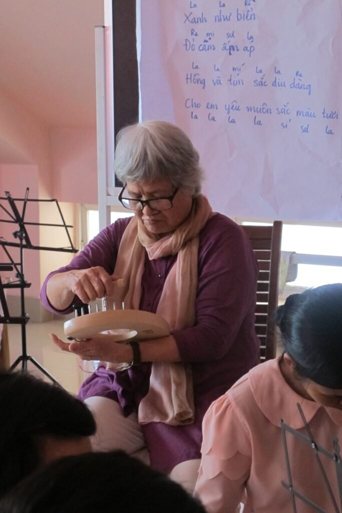 Trong khoá đào tạo GV tiểu học, chúng tôi may mắn được 45 phút mỗi ngày học cùng cô. Cô là người đã cho tôi thấy Eurythmy có thể làm được những gì, vô cùng nhiều. Ngoài việc giúp bản thân di chuyển trong chánh niệm, duyên dáng và đầy năng lượng, thiền định và tĩnh tâm. Eurythmy còn có thể diễn dạt các từ ngữ, âm thanh, trạng thái, tính chất. Thậm chí bộ môn này còn diễn đạt cả các hành tinh, các ngôi sao trong chòm sao Hoàng đạo, hành trình tiến hoá của loài người … cho đến các bài tập tập trung, luyện mắt, luyện tay, diễn tả cả một câu chuyện, vở kịch, dạy các em đường thẳng, đường cong. Chưa kể đến việc chữa lành từ tâm hồn (chứng không tập trung, tự kỷ…) đến thể chất (móm, hô, vẹo cột sống ….). Phần chữa lành healing thì chúng tôi chưa được cô dạy mấy, vì không có thời gian, chứ cô là người thực hành Eurythmy chuyên nghiệp.