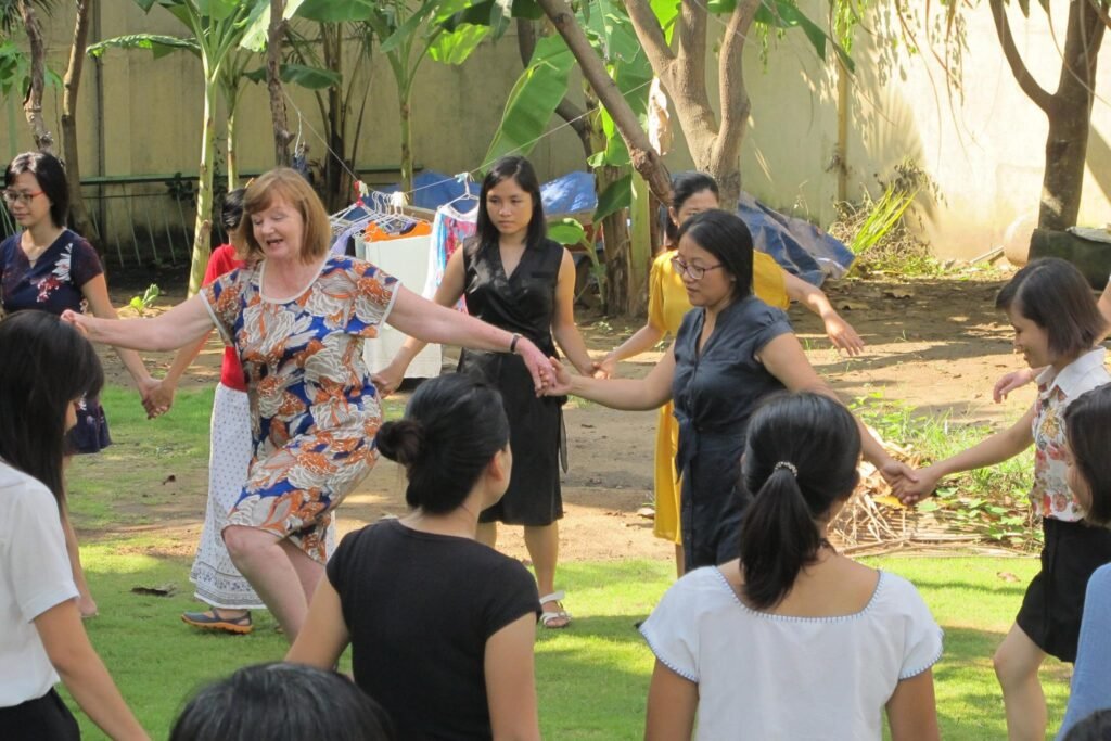 Cô rất bận, vì giáo viên (và cả nhà trị liệu Eurythmy cho trẻ đặc biệt) như cô rất hiếm. Cô dành thời gian qua Việt Nam là cơ hội khó có. Cô lại ưu tiên dạy cho lũ trẻ hơn người lớn. Hà Nội may mắn sắp xếp được 1 buổi hội thảo cô dạy cho người lớn mà mình không hiểu vì sao các bạn đăng thông tin quá cận ngày (hội thảo vào Chủ Nhật tuần này).