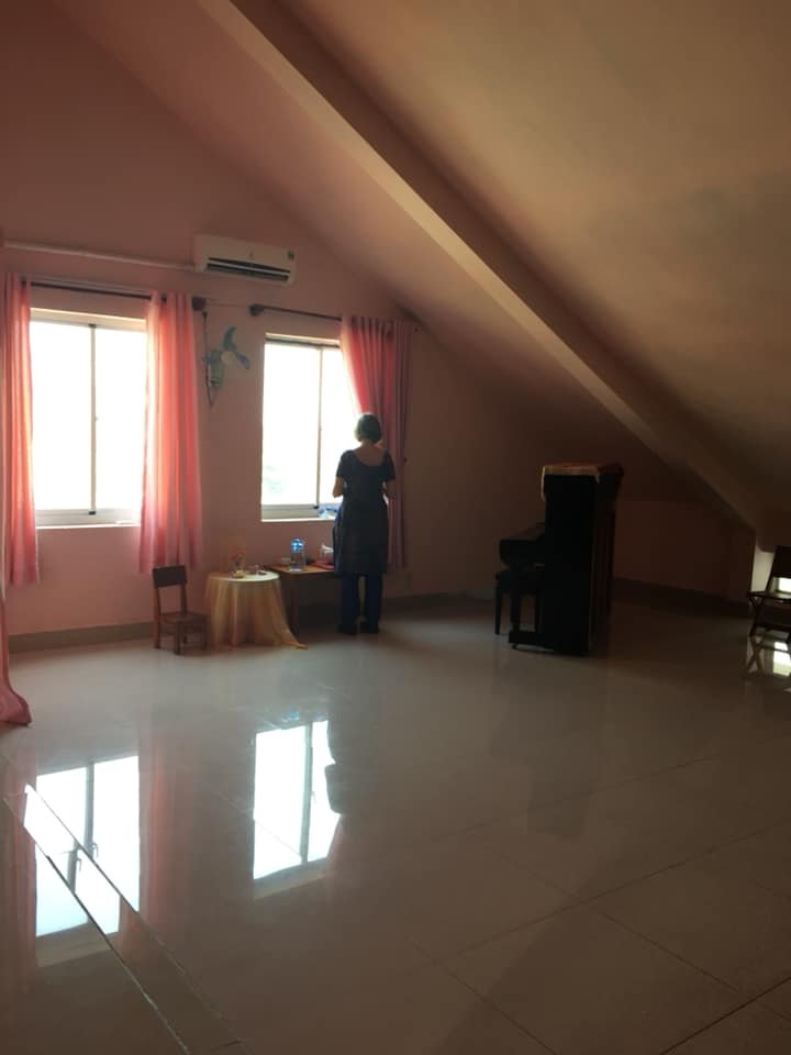Sáng nay mình mua nguyên liệu để gói bánh cho Hội Xuân nên vào trường TH, và thấy cô đang ngồi chờ xe để qua MN dạy. Sau một hồi gọi xe taxi không được, thì có gợi ý mình chở cô bằng xe máy sang trường MN. Ánh mắt chờ đợi và lo lắng của cô khi chờ xe mới khắc khoải làm sao, nên mình hỏi cô có ngại không nếu mình chạy nhanh. Cô cười phá và bảo: “Cô sẽ nói cho em biết khi em chạy nhanh quá!”. Đến nơi, chưa kịp thở, cô vội vã mang giày Eurythmy vào và chạy vào lớp MN. Sau đó thì cô lên trên phòng này, trước 20 phút để chuẩn bị cho lớp tiếp theo. Việc chuẩn bị lớp bao gồm đi quét căn phòng thật sạch, thật thật sạch, sắp xếp lại bàn ghế gọn ghẽ, kiếm bình hoa và nến cho bàn thiên nhiên, rồi cô ra đứng đây chuẩn bị các bài nhạc và rồi cô đứng yên. Và có một đứa là mình lặng người đi đầy kính trọng.